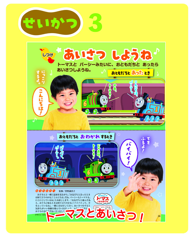 お友だちと会った時、別れる時の挨拶を、トーマスたちといっしょに学びます。