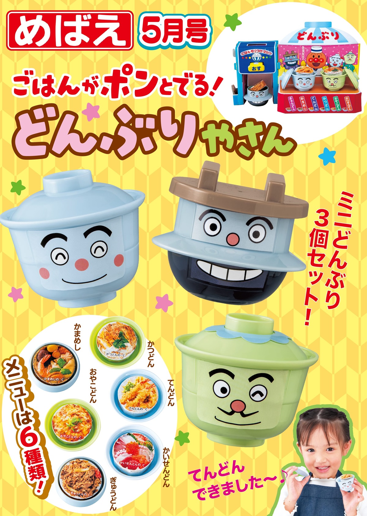 アンパンマンに登場する「どんぶりまんトリオ」のどんぶりやさんごっこあそびだよ。