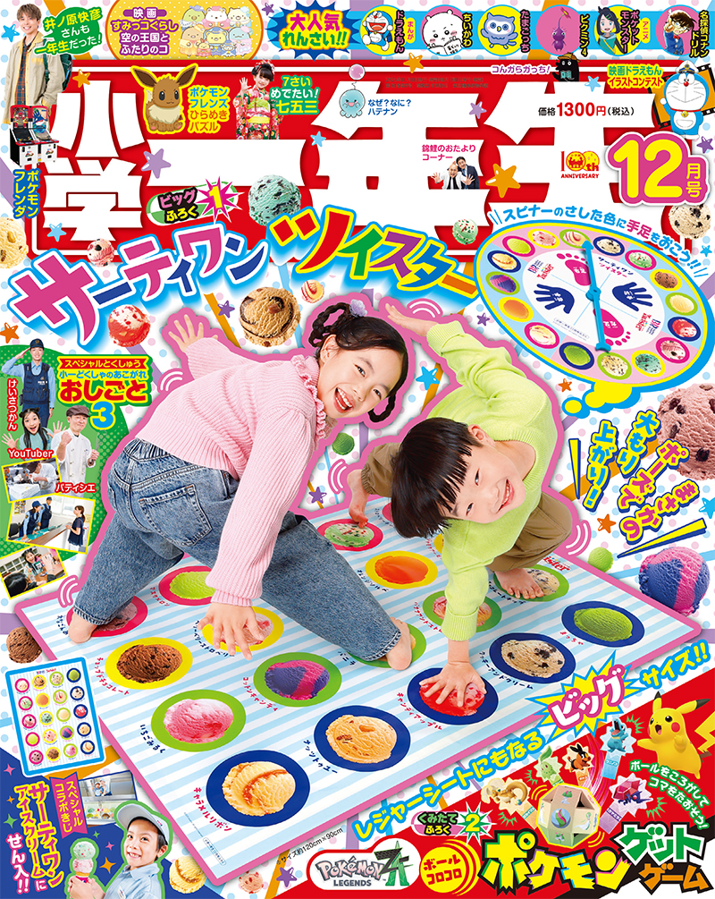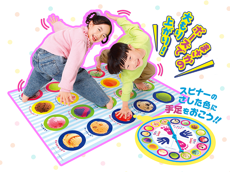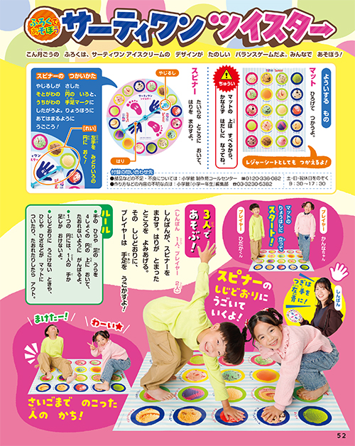 今月号のふろくは、お友だちや家族といっしょに盛り上がれる「サーティワン ツイスター」だよ!
