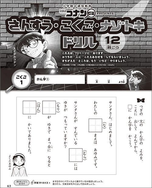 小学生の考える力を育てる通信教育「名探偵コナンゼミ」のノウハウを盛り込んだドリルページで、コツコツと学習習慣をつけよう。国語と算数とナゾトキの問題があるよ。