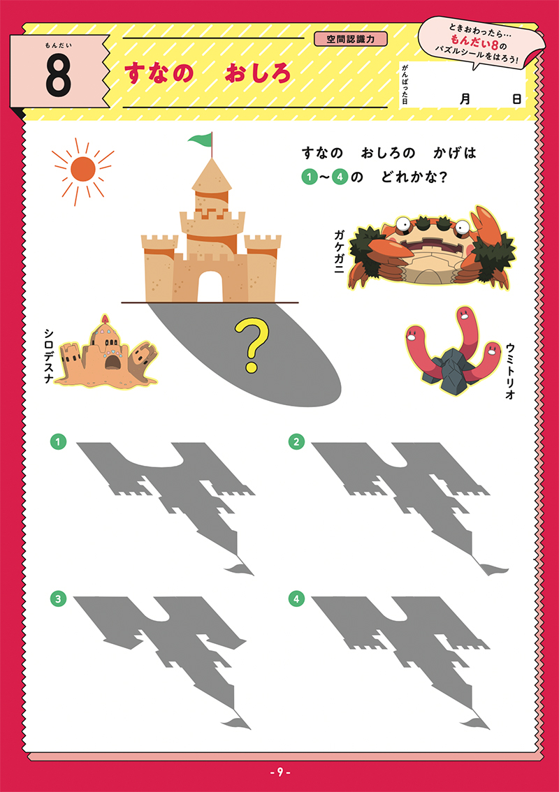 『プログラミング思考を育てる ポケモンパズルドリル 図形たっぷり編』の9ページに掲載しております「もんだい8」の選択肢の図が誤っておりました。