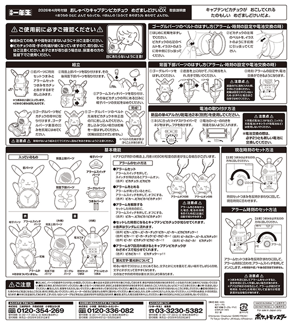 2026年4月号ふろく「おしゃべりキャプテンピカチュウ めざましどけいDX」の説明書は、付録が入っている箱のなかに同梱されています。
